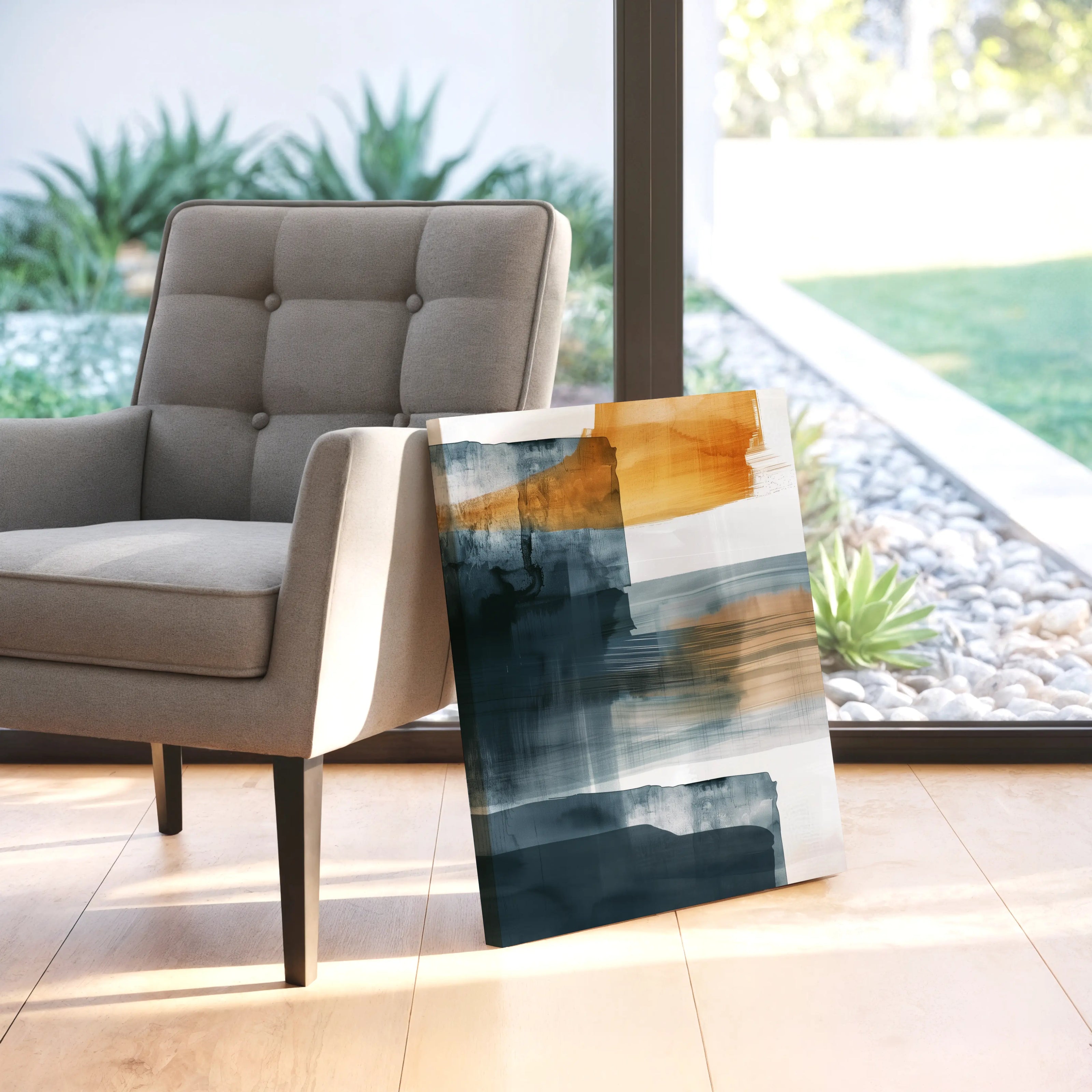 Modern Abstract Canvas Wall Art – Navy Blue & Gold Textured Minimalist Design
