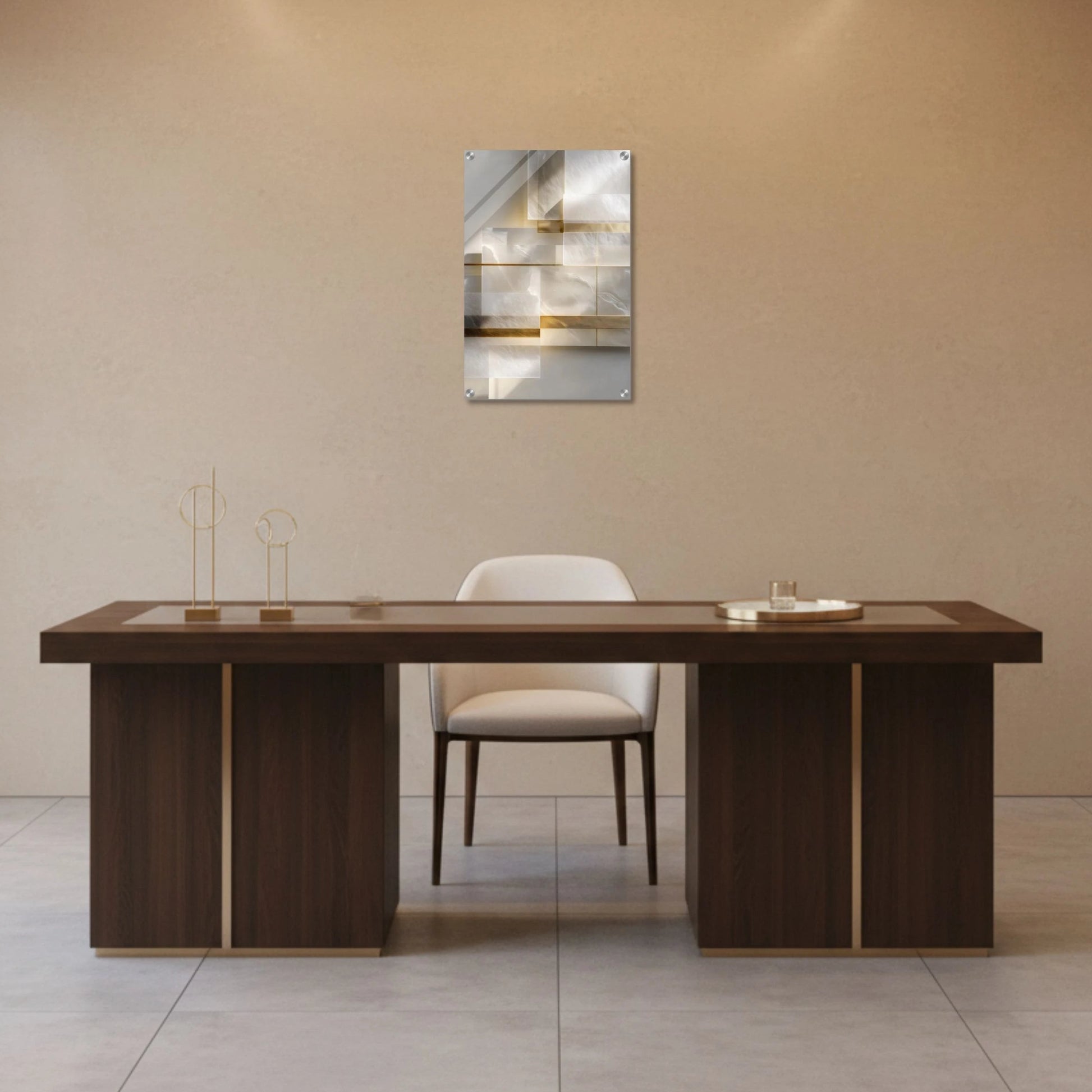 Layered Geometry in Gold & Stone – Acrylic Wall Art